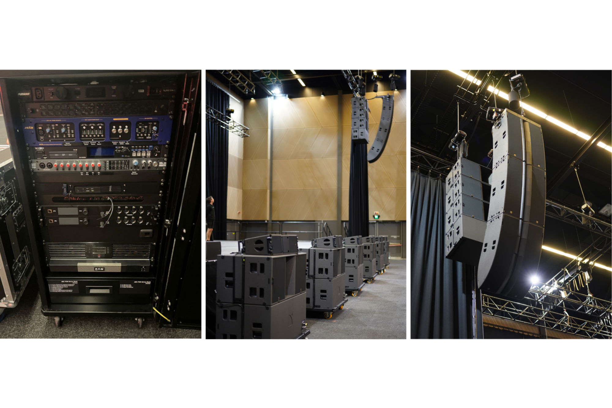 The Adelaide Entertainment Centre (AEC) has been welcoming punters since 1991, and back in 2010, finished a $52 million renovation that added the AEC Theatre above the main arena. The Theatre can seat 1,900 in traditional theatre mode, can host 1,000 for cocktails, or 700 for a banquet. It can also be split in two. The original L‑Acoustics V‑DOSC PA was built on an ingenious system that could physically move the PA up and down the venue according to format, and make the space more intimate with less seating rolled out.